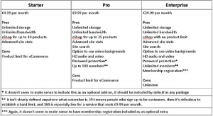In some ways this looks good because the basic price is not too high and includes eCommerce at every level, but then you start to notice a few things.