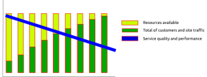In the chart above, you can see how the popularity of a host (and the popularity of the sites it hosts) impacts negatively on the quality and performance that can be provided by the available resources.