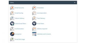 You have access to all the email functions through the email section on cPanel. You’ll find all the various features are grouped into these collapsible sections, which makes it easy to control what you see on the screen. Some cPanel themes even allow you to drag and drop the sections to the order you want them to appear in.