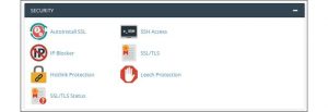 Keeping your websites secure should always be a top priority, and cPanel certainly provides plenty of tools to help you do that. Using the cPanel security tools you can install an SSL certificate, block access from certain IP address ranges known to be malicious or undesirable, protect assets on your site from hotlinking and leeching, and set up SSH access.